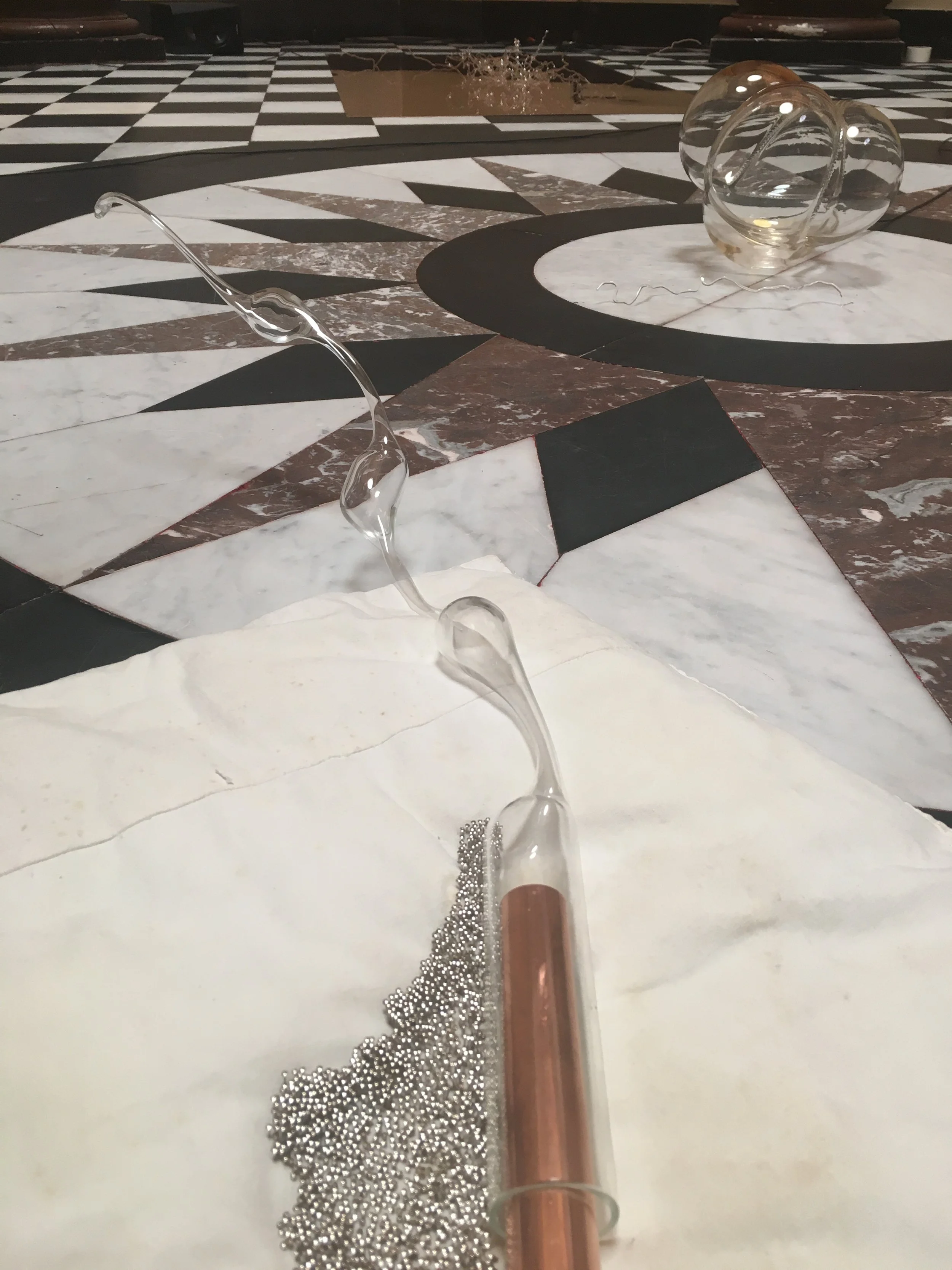 Installation verre, cuivre,épingle,textile/dimension variable/2022/Chapelle Grand Hospice
