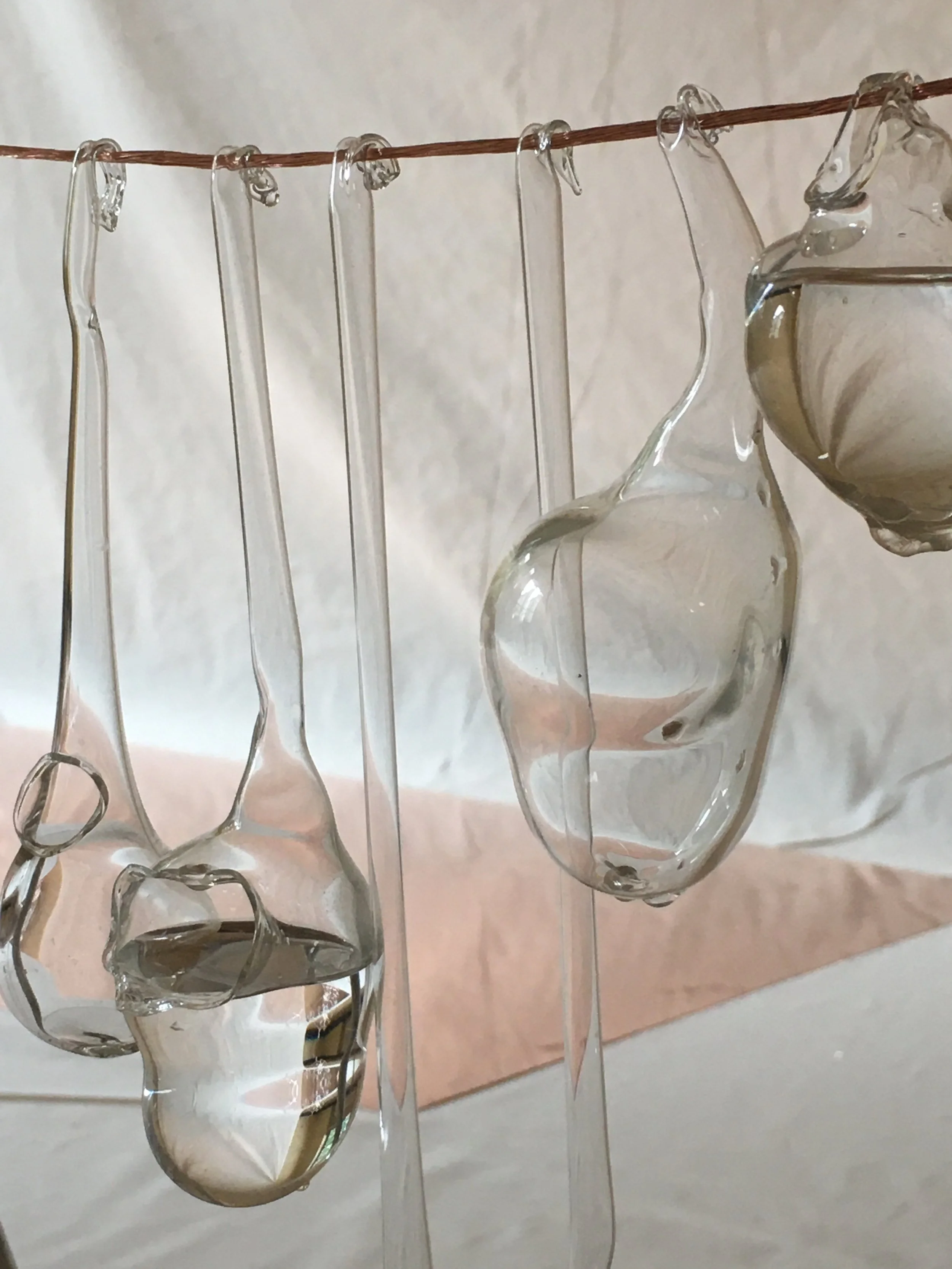 Dans le cadre de l'appel à projet « un futur pour la culture » l’idée était de poursuivre la réflexion et la recherche à la rencontre entre les Arts visuels et le Son. Le principe est de déployer la charge poétique des matériaux en testant différents dispositifs de captation sonore et de diffusion dans l’espace. Le verre soufflé et le verre filé sont associés à d’autres types de matériaux pour générer des sculptures-instruments hybrides.